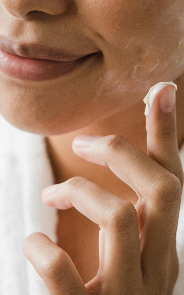 Breng na het exfoliëren een gelijkmatige laag aan op gezicht en hals (vermijd de gevoelige zone rond de ogen).